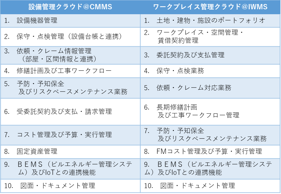 「設備管理クラウド@CMMS」並びに、「ワークプレイス管理クラウド@IWMS」は、