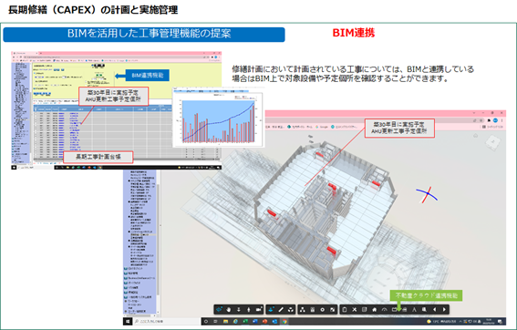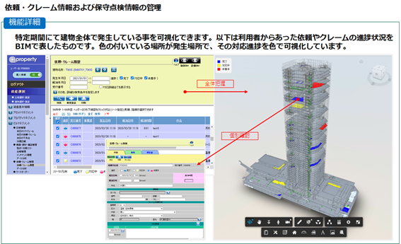 これら2つのサービスはいずれも「統合資産管理クラウドサービス@プロパティ」の基盤を活用し、またBIM(Building Information Modeling:ビルディング・インフォメーション・モデリング)との連携を実現することにより、視認性の向上、履歴管理による資産価値や収益性の向上を後押しします。