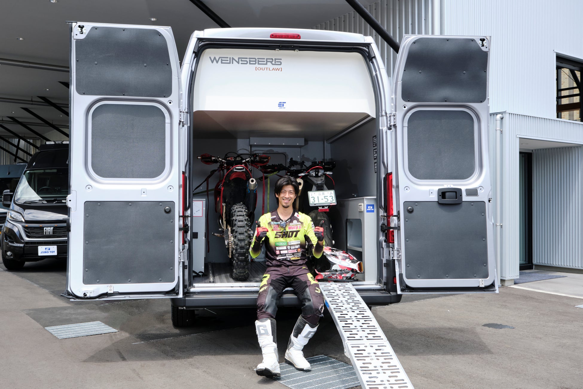 そして2024年8月22日、藤原氏にレースやイベント参加でのバイクトランポ車両として、WEINSBERGのOUTLAW(アウトロー)をスポンサー貸与しました。