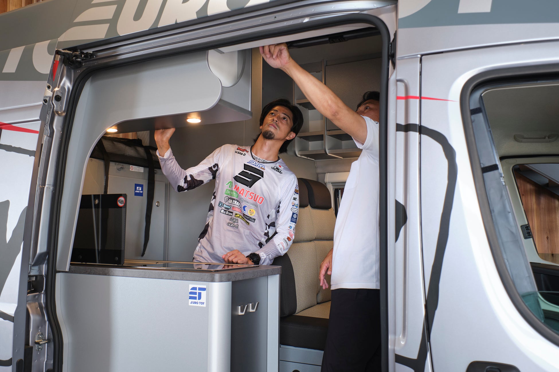 全ライダーの憧れが詰まった夢のモーターホーム「OUTLAW」で、藤原氏が国内のレースやイベントを巡る様子を、トイファクトリーのホームページやSNSで応援レポートしていきます。