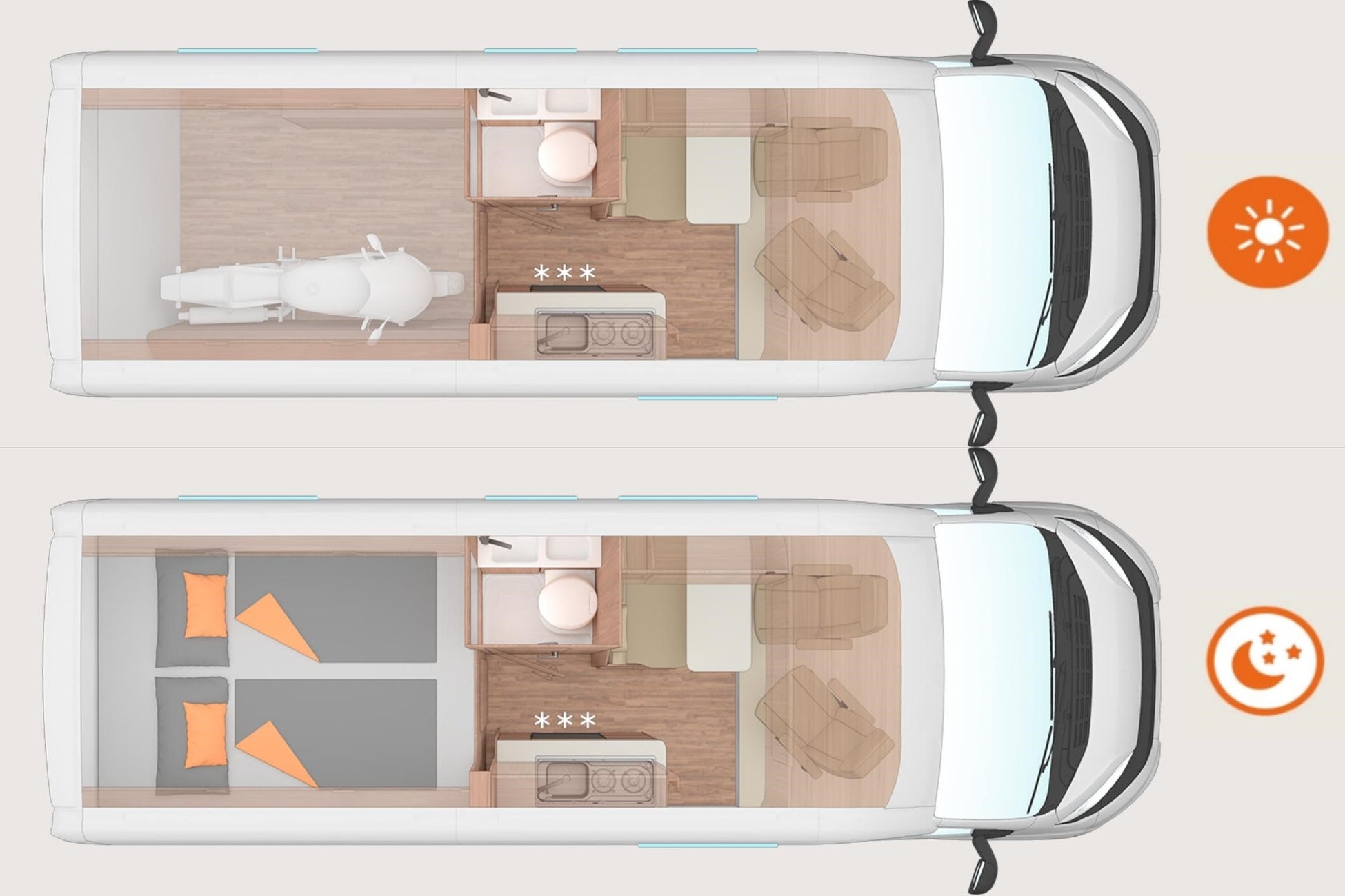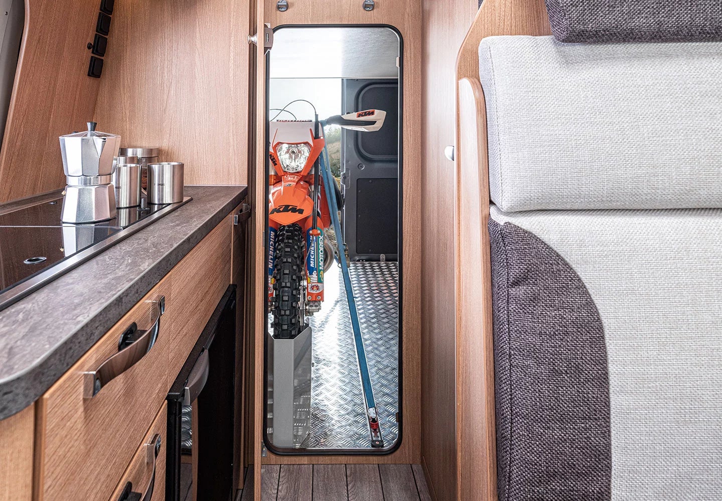 トイファクトリーが日本総代理店を務めるドイツ/WEINSBERGの車両。キャンピングカーの居住空間にバイク2台を積載できるセパレートリアガレージ付き!バイク乗りための夢のモーターホーム