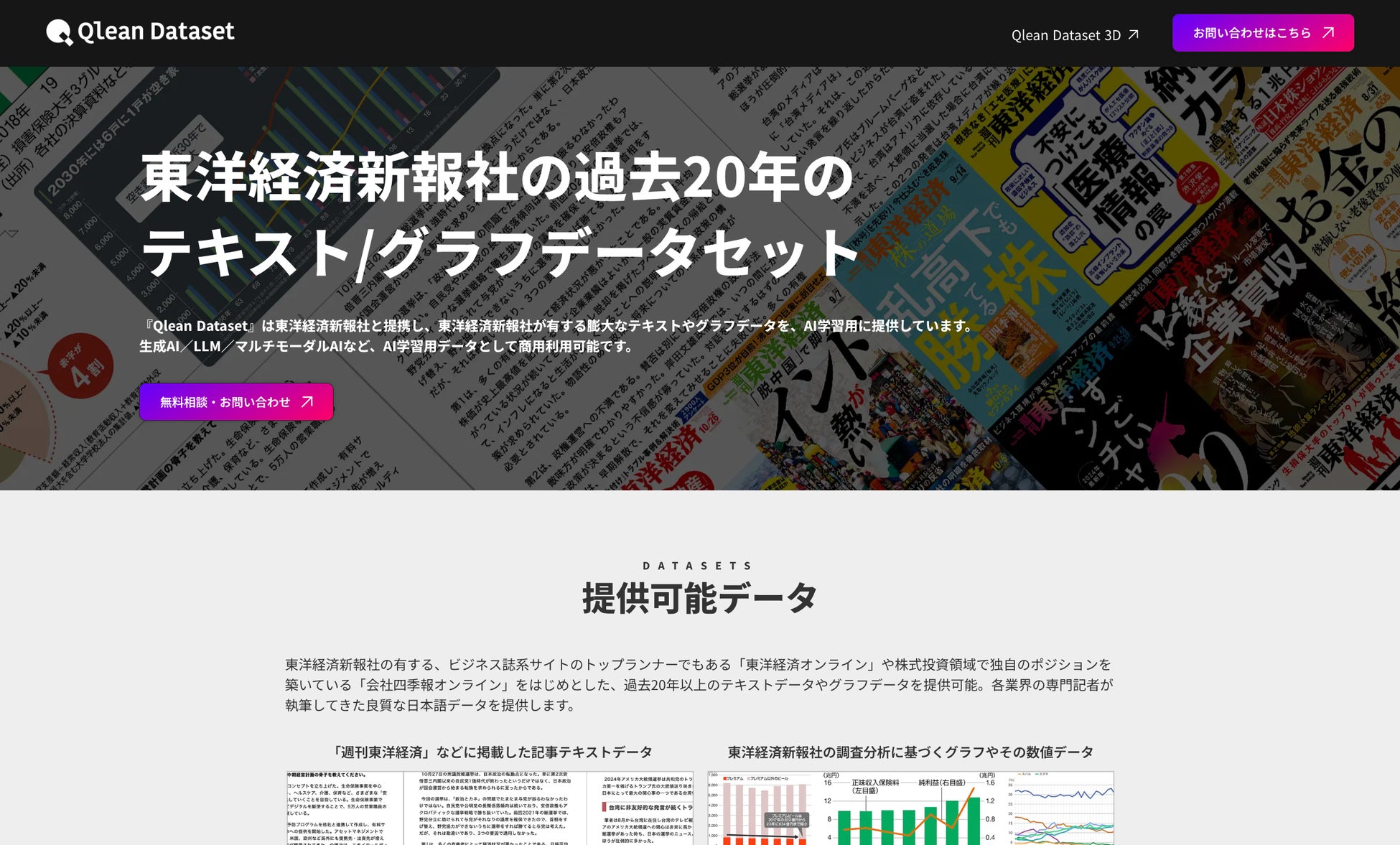 ―東洋経済の保有するテキストデータ等を『Qlean Dataset』において、LLM/生成AI/マルチモーダルAI向けのAI学習用データとして提供開始ー