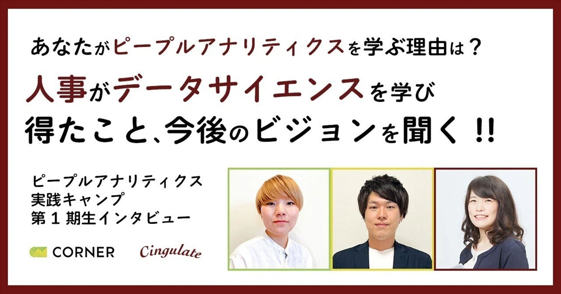 第1回「ピープルアナリティクス実践キャンプ」に参加された方々にインタビューを実施しています。プログラム参加の動機や期待、プログラムで得られた学びや視点、実務への活かし方を含めた今後のビジョンなど、ぜひご参考ください。