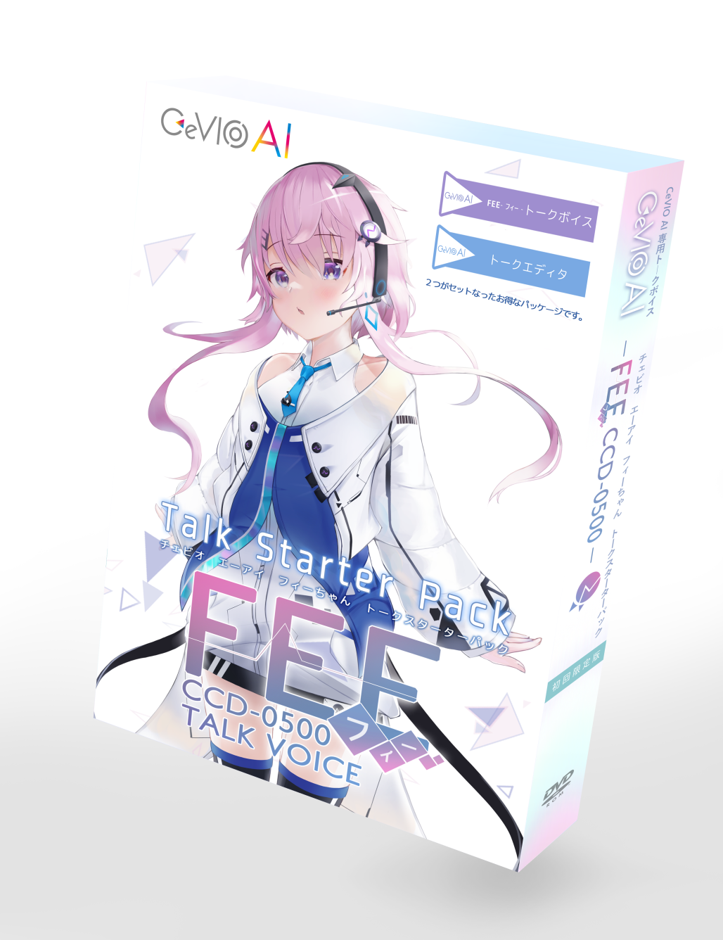 ※CeVIO AI フィーちゃん トークスターターパック パッケージ版(初回限定)においては、「フィーちゃんドキドキッ?! SP VOICE」及び「トークボイス衣装のフィーちゃんアクリルスタンド」が付属いたします。