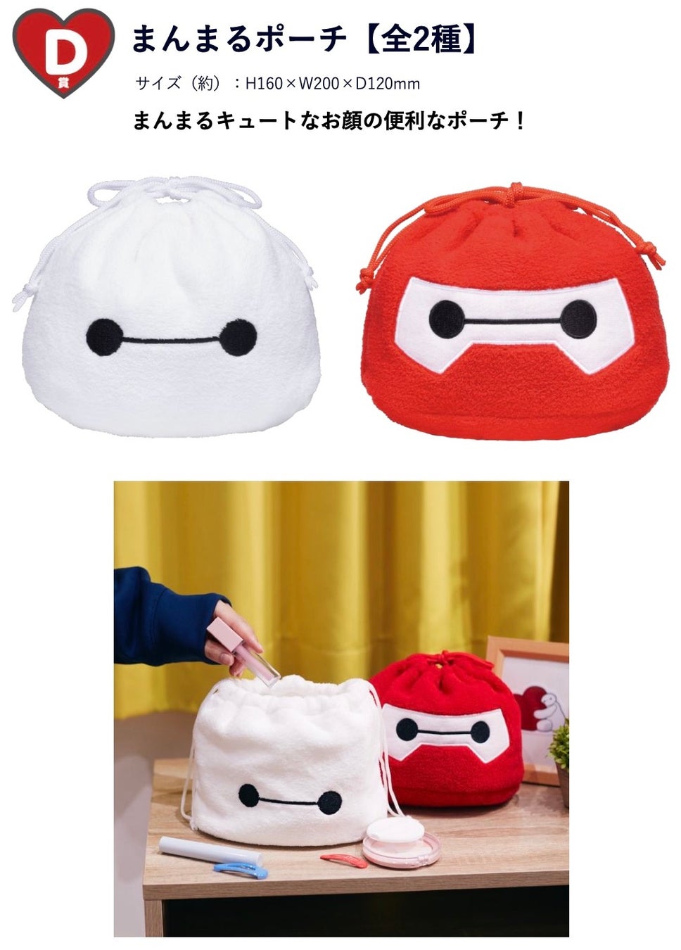 ◇テーマはベイマックスといつでも一緒!A賞には映画『ベイマックス』の名シーンを再現できる特大サイズの『ベイマックス ぎゅっとハグ!ぬいぐるみ』が登場!他にもTシャツやポーチなど毎日をベイマックスと一緒に過ごせるアイテムがラインナップ。Last賞はベイマックスのBIGソフビフィギュア!
