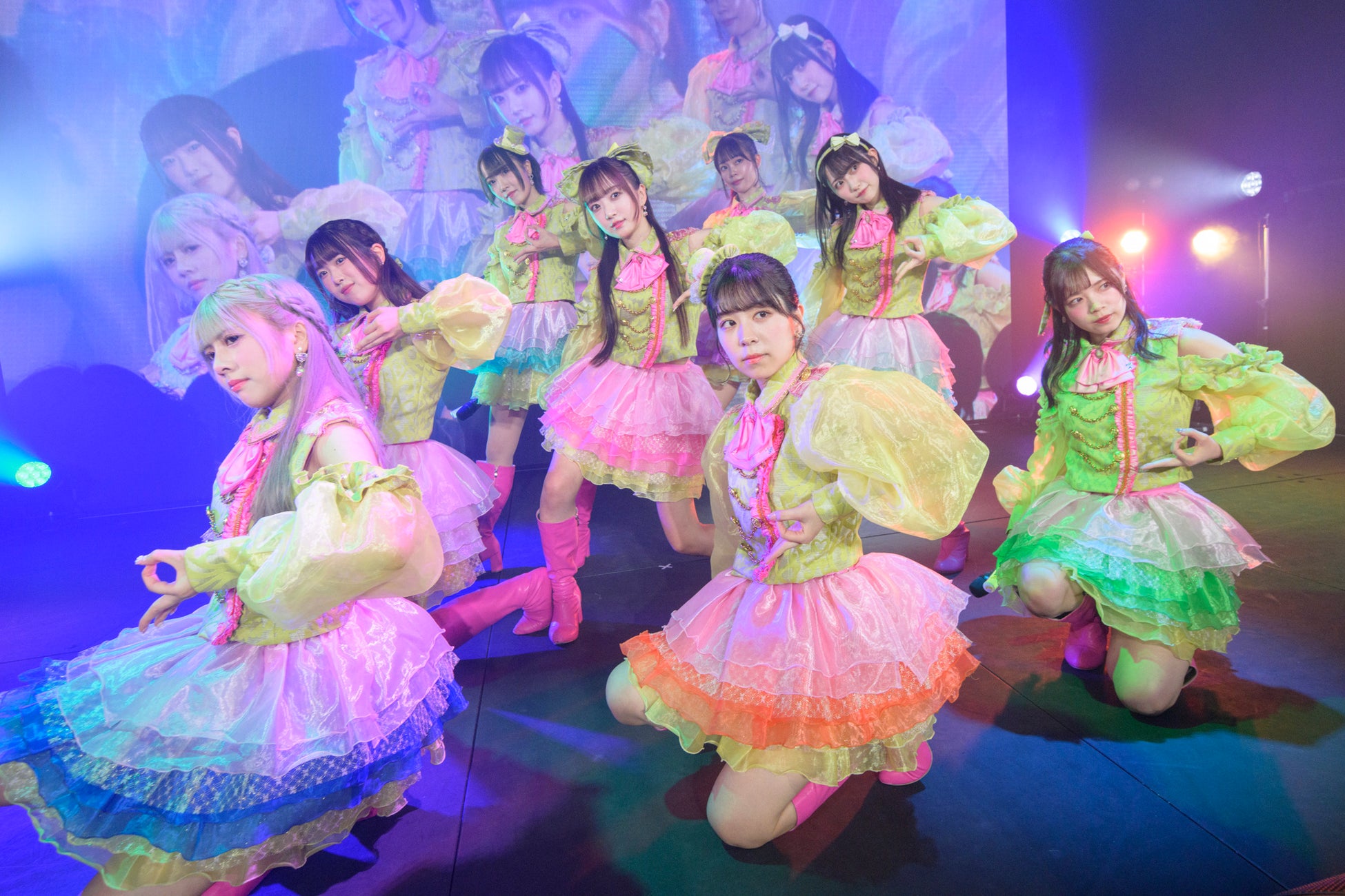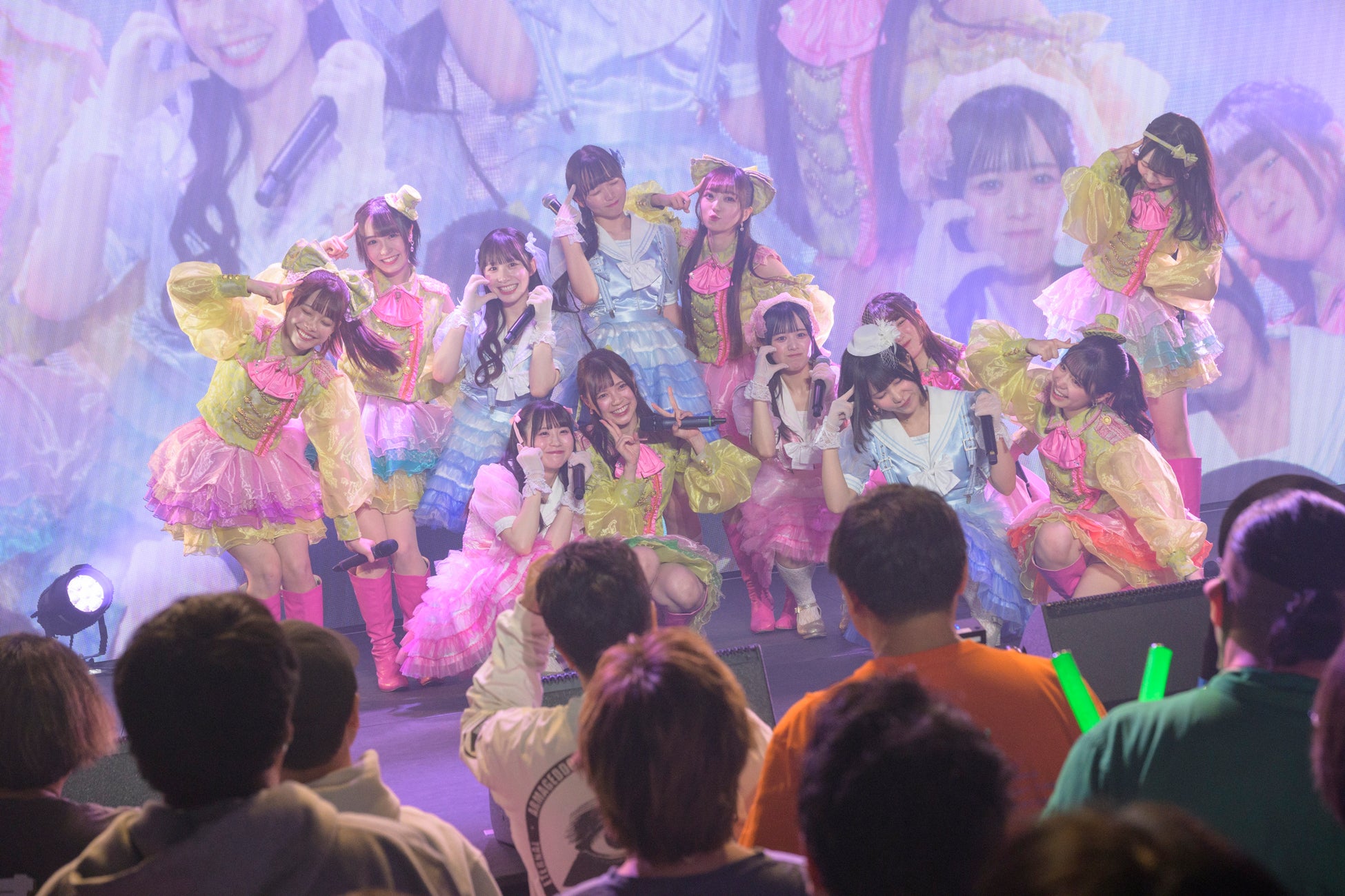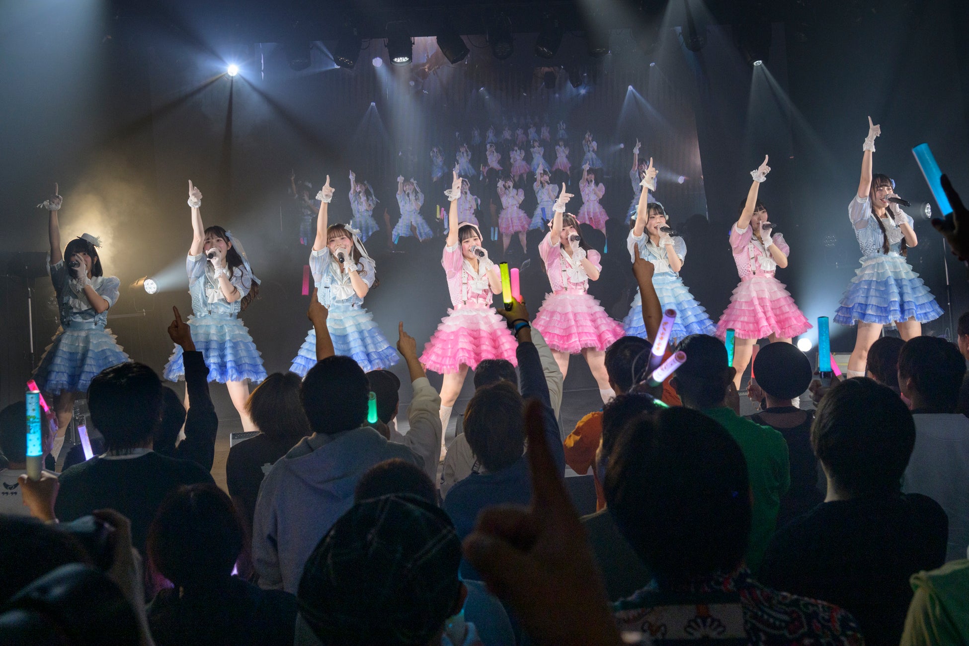 今回の対バンゲストには、学校生活をコンセプトとし、どこか儚く甘酸っぱい青春を届ける11人組青春系アイドルユニット「かすみ草とステラ」を迎え、1部・2部ともに双方のファンで満員となった。