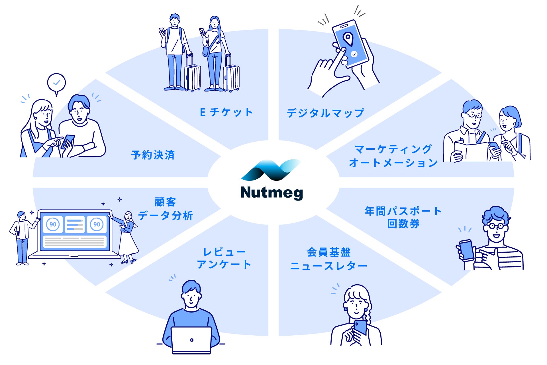 「Nutmeg」は、観光事業者向けのオールインワン型の観光DX SaaSプラットフォームです。観光事業者専用のオンライン予約サイトを簡単に設置でき、従来の窓口販売や電話予約をデジタル化します。これにより、販売業務や在庫管理・予約管理業務が効率化され、現地の入場管理や参加管理がスムーズになります。さらに、デジタルマップ機能を活用することで、訪問者の現地体験をより充実させ、満足度を向上させることができます。これらの機能により、観光事業者は深刻な人手不足を解消し、売上の拡大を実現できます。