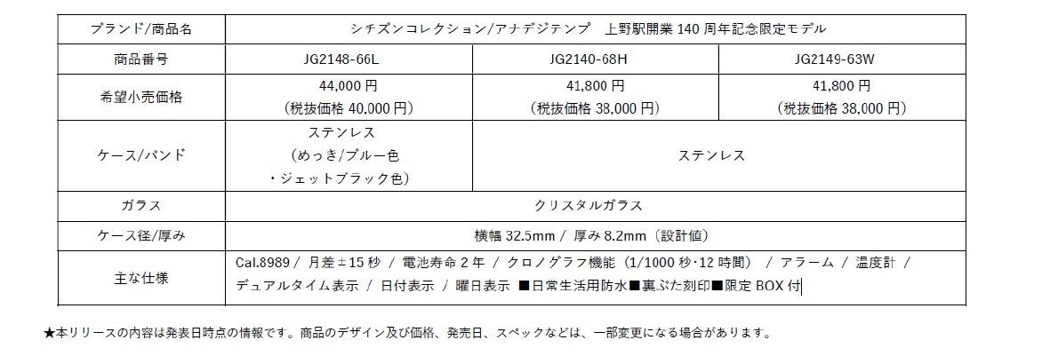 『シチズンコレクション』上野駅開業140周年記念限定モデル完全受注販売