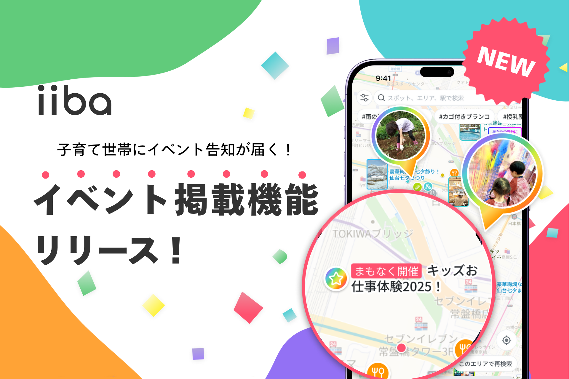 子育てマップアプリ『iiba』を開発・運営する株式会社iiba(本社:東京都港区、代表取締役社長:逢澤奈菜、以下当社)は、自治体・企業・施設担当者がiibaアプリ上でイベントやスポットを登録できる「イベント掲載機能」および、ユーザーがアプリから直接イベント予約を行える「イベント予約機能」をリリースしたことをお知らせいたします。