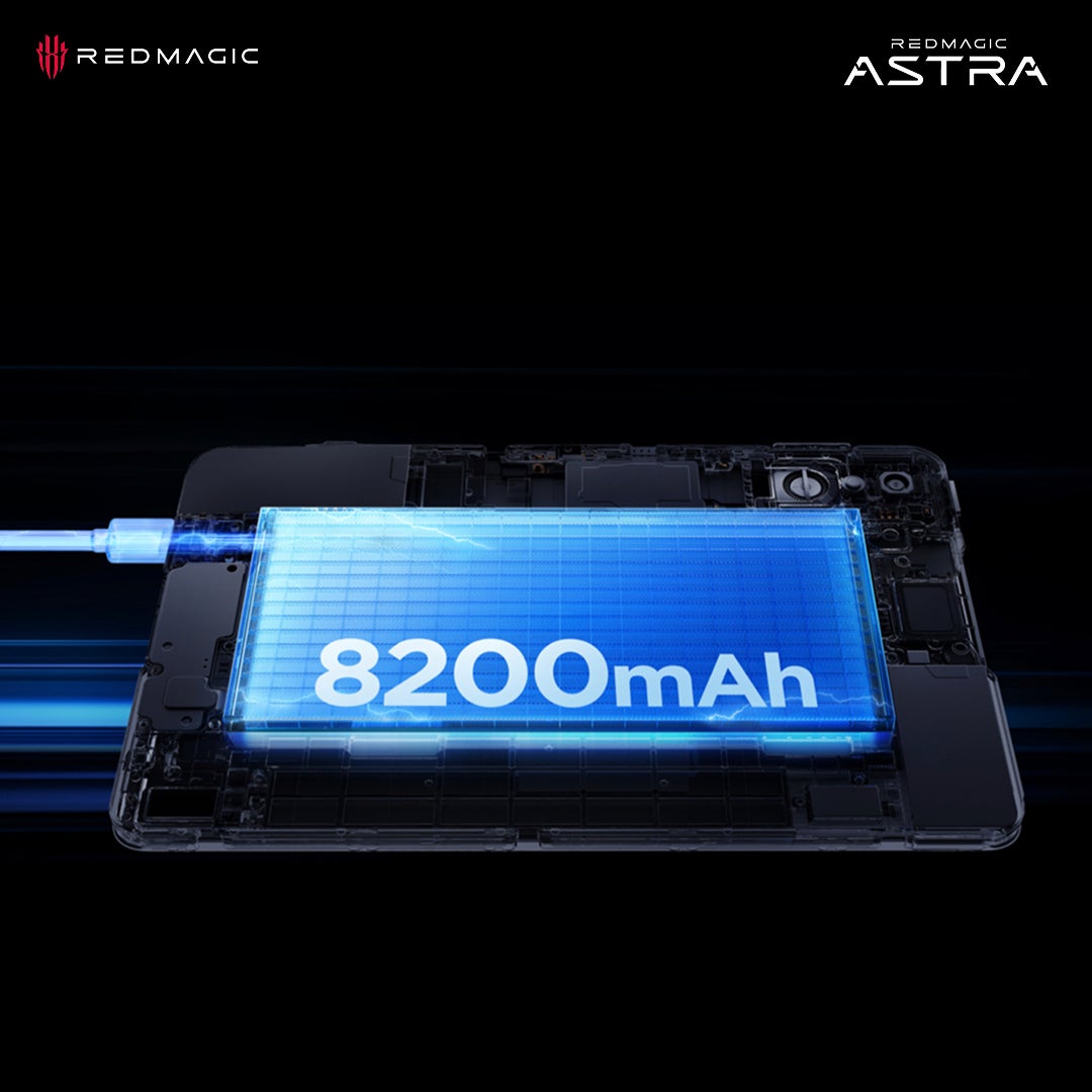 「REDMAGIC Astra」は、小型タブレット機種最⼤級8,200mAhの大容量バッテリーを搭載しております。この大容量バッテリーにより、長時間のゲームプレイや動画視聴をお楽しみいただけます。