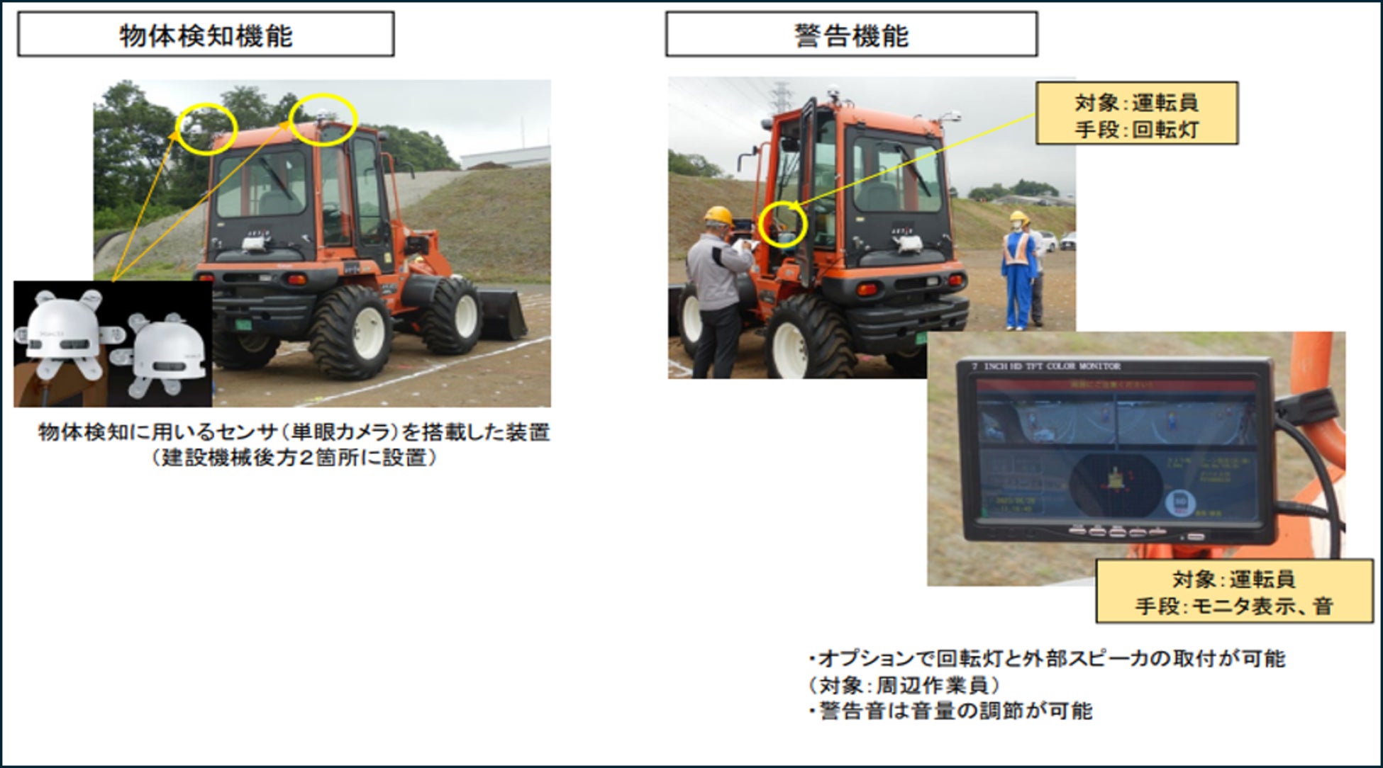 ※2一部の重機では配線仕様により、ご利用できない場合があります。本機能は運転者の判断を補助し、事故の低減を目的としています。
