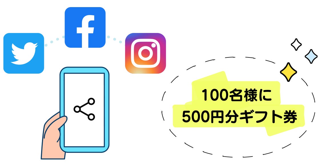 シェアで応募条件達成はもちろん、抽選で100名様に電子マネー500円分のギフト券もプレゼントします。