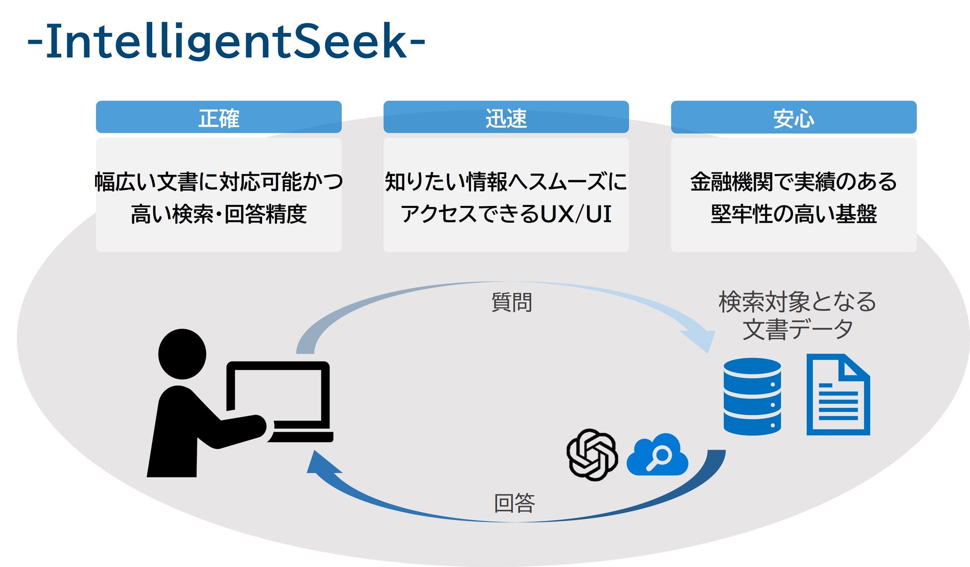 株式会社大和総研(代表取締役社長:望月 篤、本社:東京都江東区、以下、「大和総研」)と三菱UFJニコス株式会社(代表取締役社長:角田 典彦、本社:東京都千代田区、以下、「三菱UFJニコス」)はこの度、生成AI(RAG※1)技術の共同研究を行い、三菱UFJニコスの社内文書検索において90%超の回答精度(正答率)を実現、その成果を基に大和総研は高精度な社内文書検索回答サービス「IntelligentSeek※2」を開発しました。三菱UFJニコスがファーストユーザーとして2024年11月1日より当サービスの利用を開始します。これにより、社内手続・マニュアルなどの社内文書検索にかかる時間が大幅に短縮されることで業務効率化を実現し、より生産性の高い業務に注力することが可能となります。