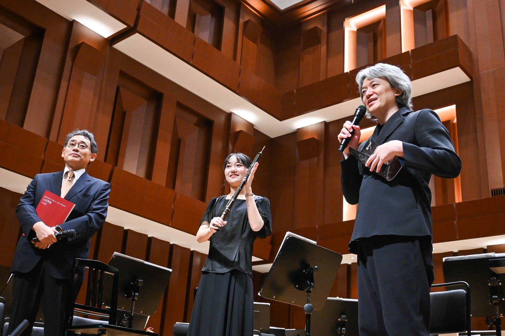 また、開演前のプレトークでは、本学大学文書館が所蔵する、100年前の演奏で実際に使用されたオーボエを九大フィルの学生が実際に演奏し、来場者の注目を集めました。