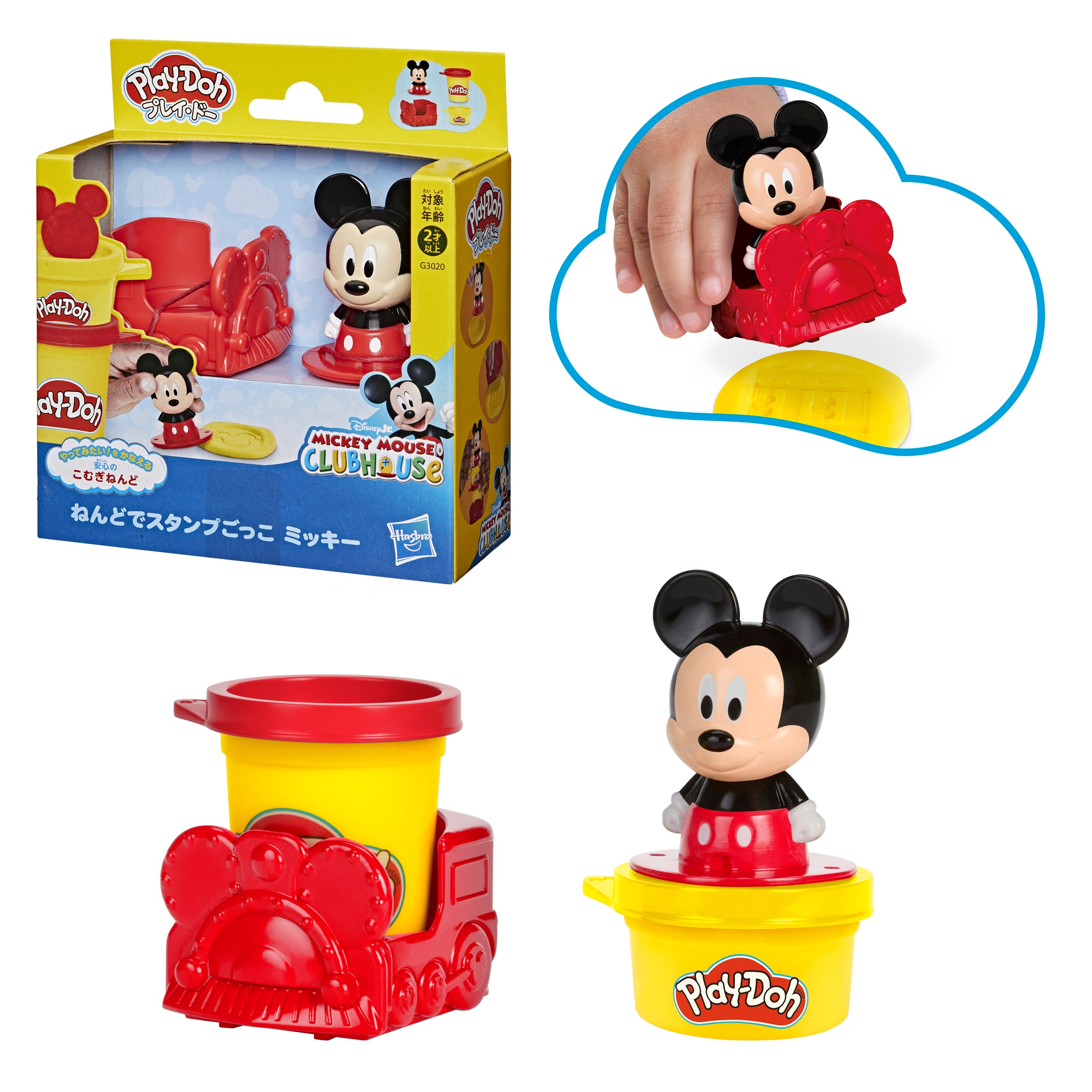 ■セット内容: ミッキーのフィギュア(スタンプ付き)、乗り物(スタンプ付き)、ねんど2個(計85g)