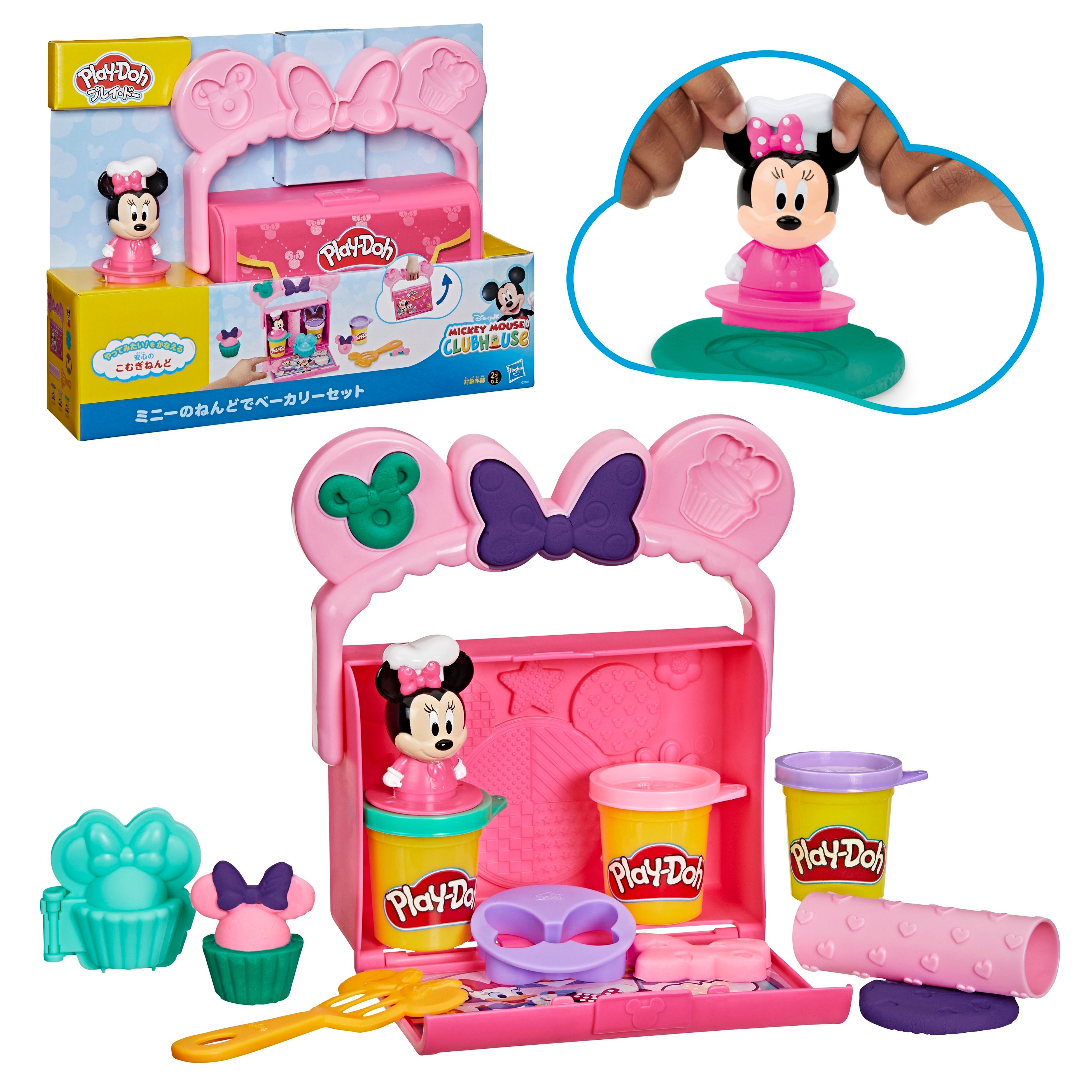 ■セット内容: ベーカリーケース、ミニーのフィギュア(スタンプ付き)、リボンの型、カップケーキの型、ローラー、フライ返し、ねんど3個(計170g) ■価格: 2,310円(税込)