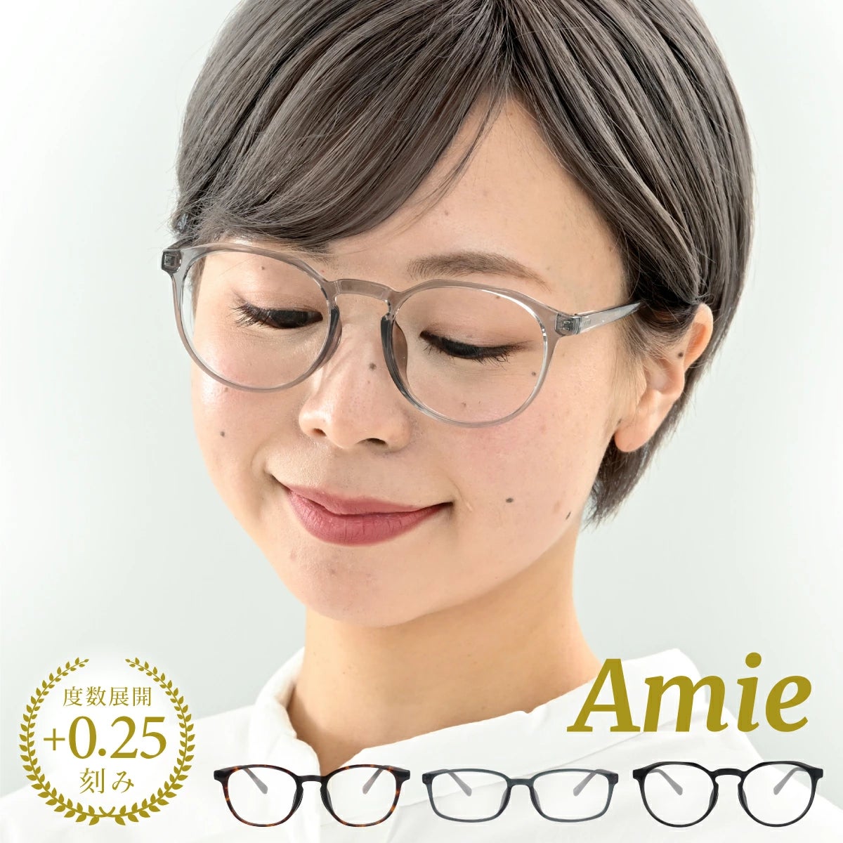 楽天の老眼鏡カテゴリで堂々の3冠獲得を果たした「Amie」。メガネメーカーが手掛けるからこそ、手頃な価格でありながら、メガネ専門店のフレームと同等のクオリティを実現しています。初めて老眼鏡をお使いになる方にもおすすめの一品です。