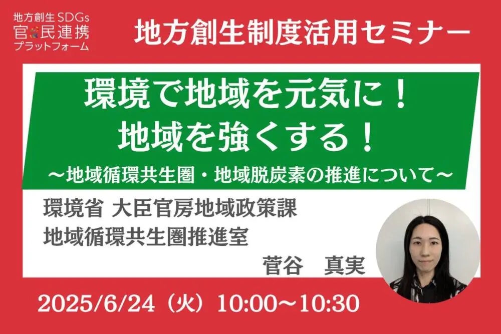 環境省の担当者登壇!6/24(火)環境で地域を元気に!地域を強くする!~地域循環共生圏・地域脱炭素の推進について~オンラインセミナー開催のお知らせ