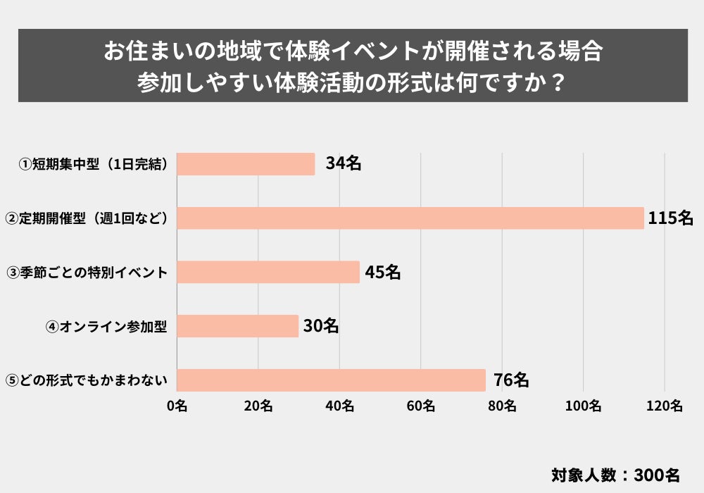 お住まいの地域で体験イベントが開催される場合、参加しやすい体験活動の形式は何ですか?
