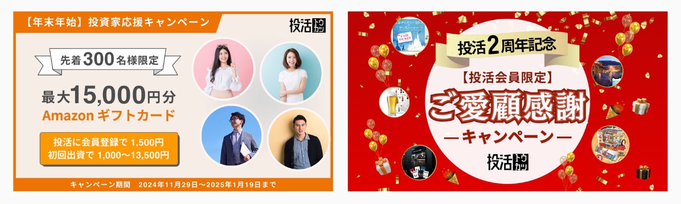 新規会員様向けではなく、既存会員様全員を対象にしたこのキャンペーンでは、多くの方からお喜びの声をいただきました。大切な資金を出資いただきました投資家の皆様のおかげで、元本毀損も発生することもなく、無事に3年目を迎えることができました。まだ知名度が低く小規模の運営となっている当サービス「投活」を信頼していただき、本当に嬉しく感じております。この場を借りて、改めて会員の皆様・投資家の皆様には感謝申し上げます。