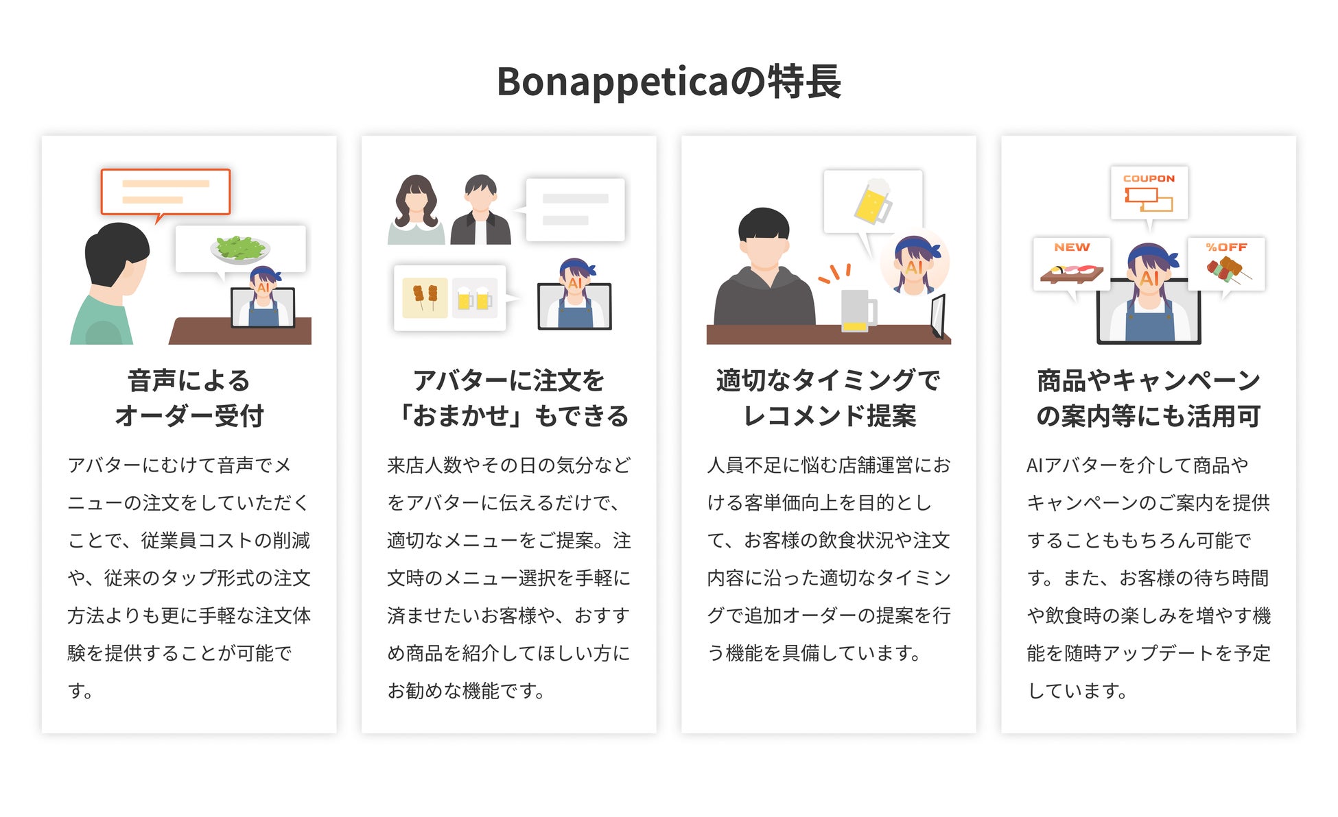 AIアバターによる最適レコメンドで客単価アップを支援「Bonappetica(ボナペティカ)」のサービス提供を開始