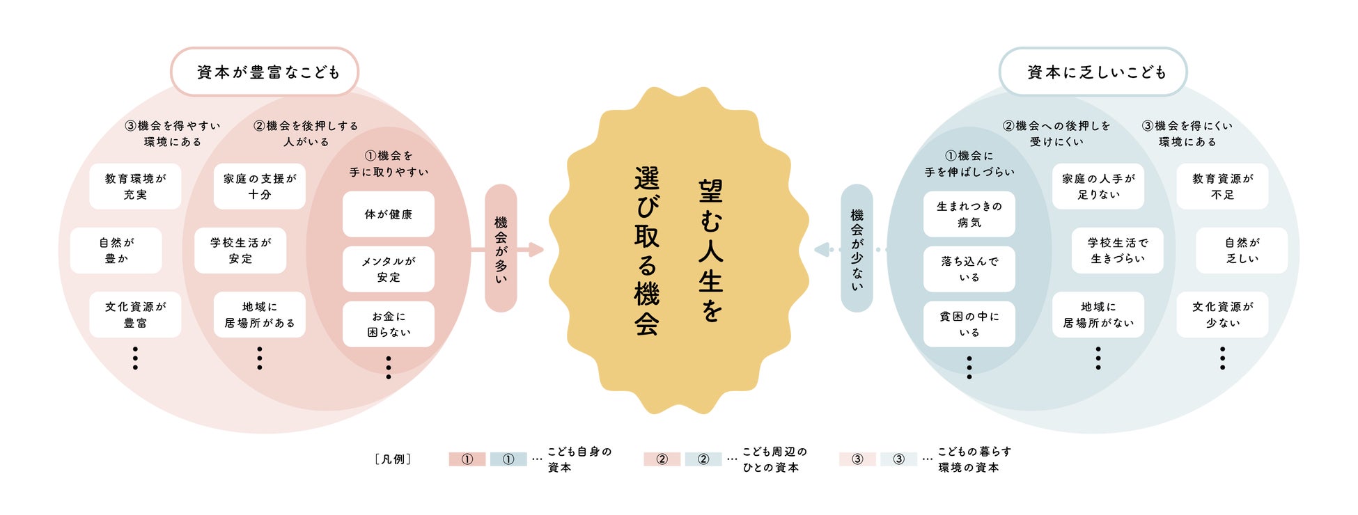 もっている資本のちがいにより、 こどもたち一人ひとりの 「望む人生を選び取る機会」に差があること
