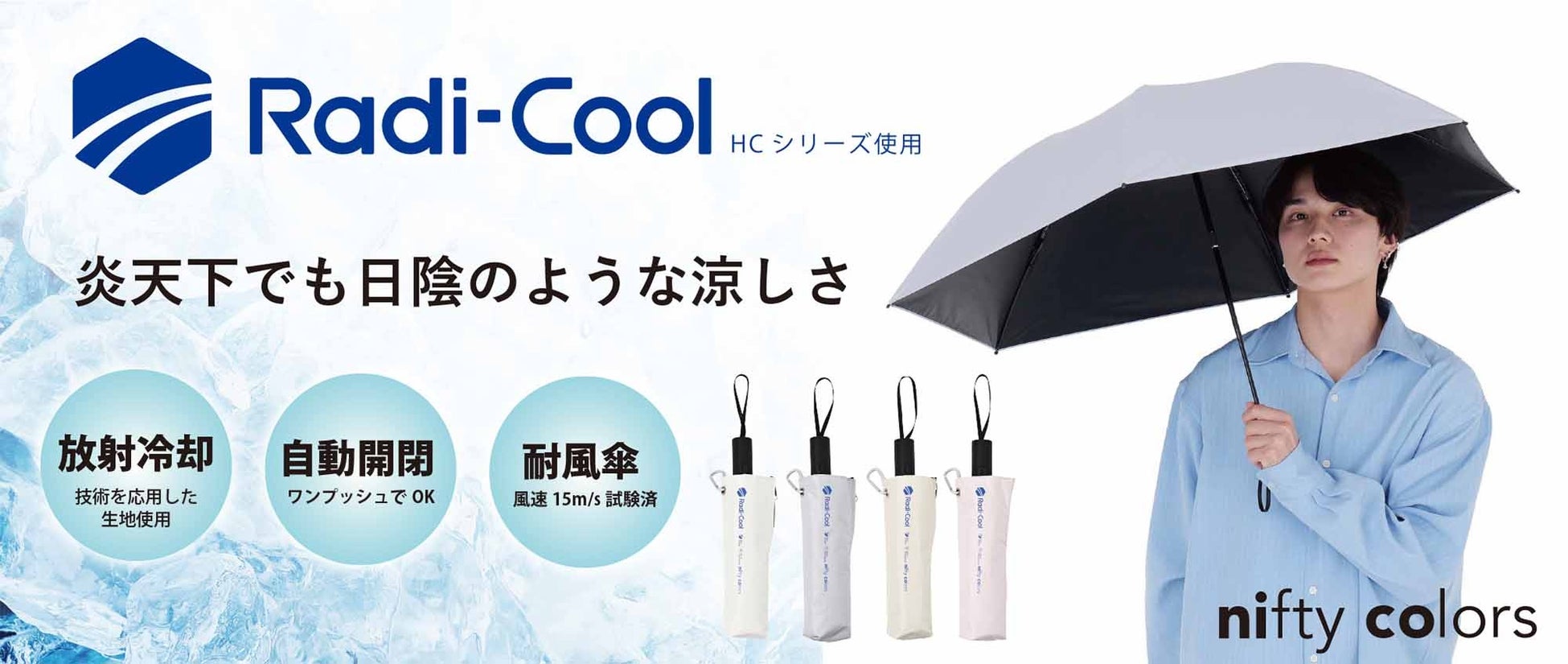 株式会社ニフティカラーズ(本社:東京都墨田区)は、放射冷却技術を応用した『RadiーCool(ラディクール)』生地を使用した耐風自動開閉傘をMakuake限定で先行展開しています。