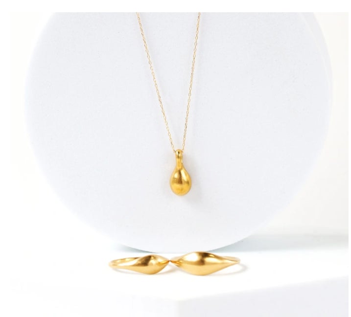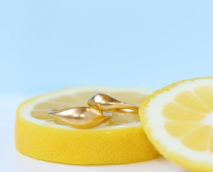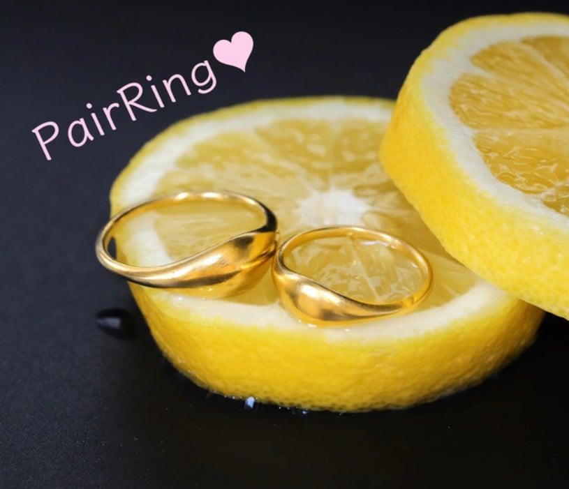 いかにも「純金です」っていうゴリゴリ感ではなく、よくあるシンプルな輪っかのリングでもない、控え目だけどしっかりと存在感もある着け心地のいい檸檬(レモン)のかたちリング&ペンダントです。