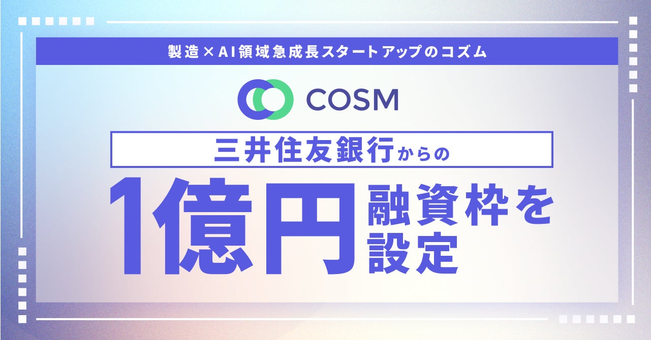 AI・IoTの力で製造業のDXを推進するスタートアップ、株式会社コズム(本社:東京都千代田区、代表取締役:橋本優希、以下「コズム」)は、2025年1月31日(金)、株式会社三井住友銀行(頭取CEO:福留朗裕)より、1億円の融資枠を設定をいたしました。