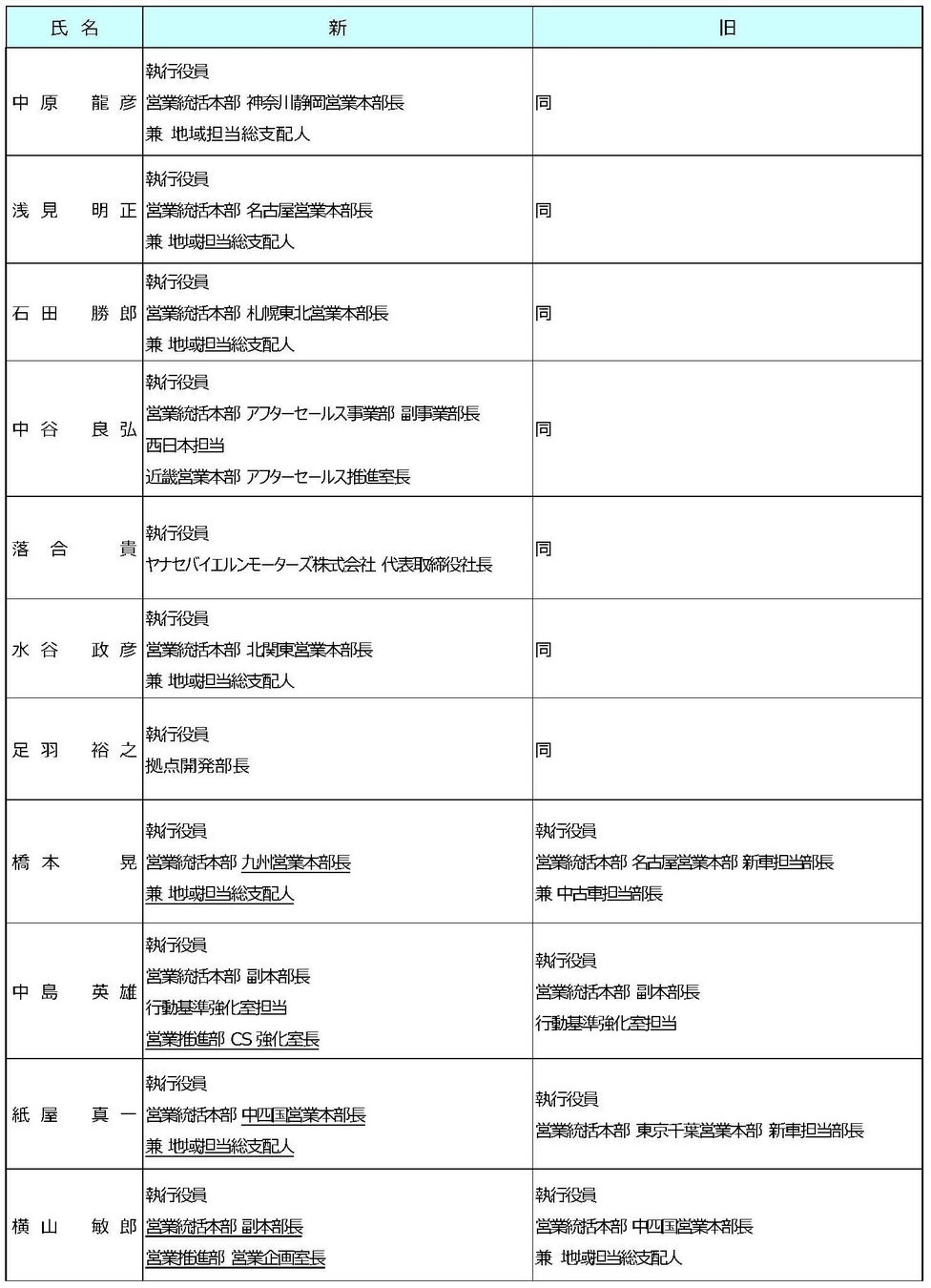 *下線部分が新任