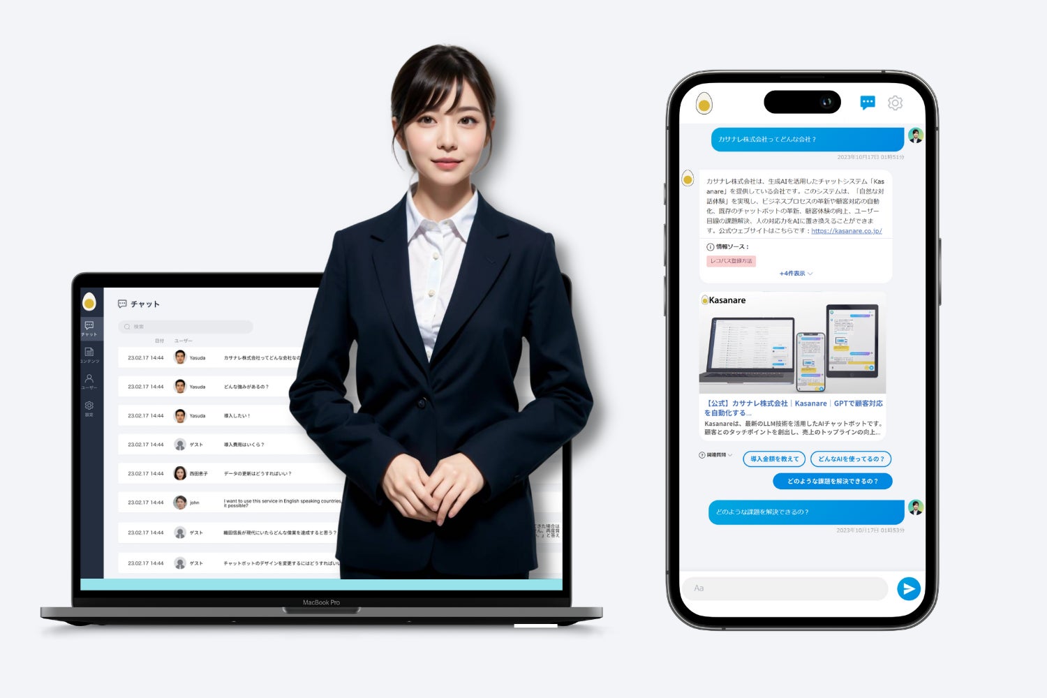「Kasanare」は、ChatGPT等生成AIの大規模言語モデル(LLM:Large Language Models)により開発されたGenerative AIチャットシステムです。