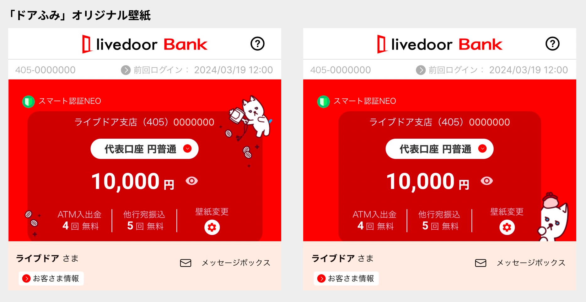 口座開設から日常の銀行取引まで、全ての操作をスマートフォンアプリで完結できるユーザーフレンドリーな設計はもちろんのこと、アプリ内では「みんかぶマガジン」の資産形成に関する記事を閲覧することができ、お金に関する知識を学ぶことができます。また、アプリのトップ画面を、当社のキャラクターである「ドアふみ」のオリジナル壁紙に変更することができ、アプリを楽しく利用していただけます。将来的にはイベント参加権のプレゼント等、「貯めて、学んで、楽しむ」銀行サービスを提供していく予定です。