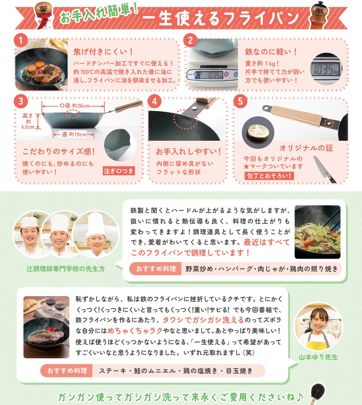 番組、メーカーが一丸となって一切の妥協なしで完成させた一生使える鉄のフライパンです。