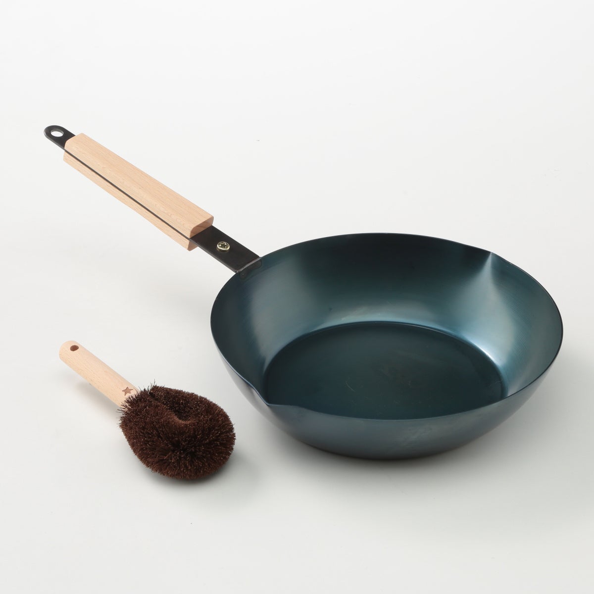 素材:本体・ハンドル:鉄製(普通鋼板)、表面加工:ハードテンパー加工、ハンドルビス:鉄製(真鍮メッキ)、ハンドルカバー:天然木(ブナ)、ハンドル表面加工:シリコン塗装
