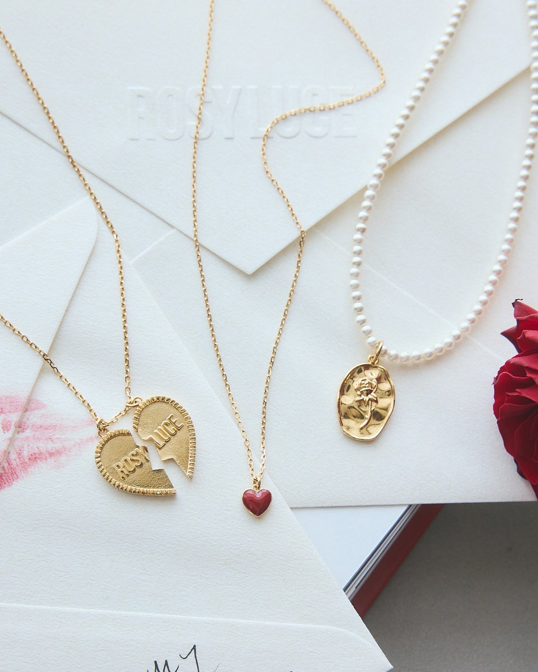 毎日の中に、小さな“ときめき”をくれるネックレス。ぷっくりとした立体感のあるハートモチーフは、Rosy luceを象徴するRosy Redで表現。