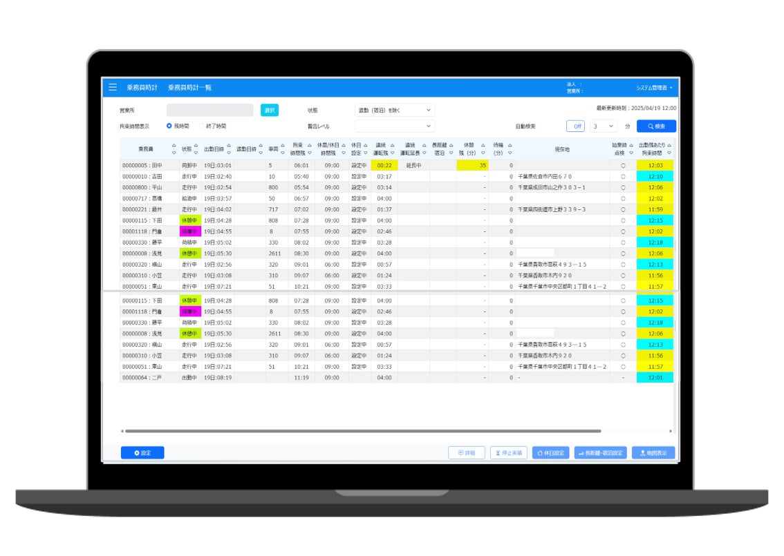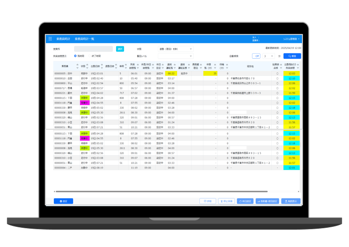 精密機器輸送は、顧客指定の配送時間帯が厳格なため、深夜便や早朝便など複雑な運行パターンが発生しやすい業界です。日跨ぎ運行時の労働時間管理が精密にできることで、改善基準告示への対応が「単なるコンプライアンス」から「戦略的な配車最適化ツール」へと進化しました。