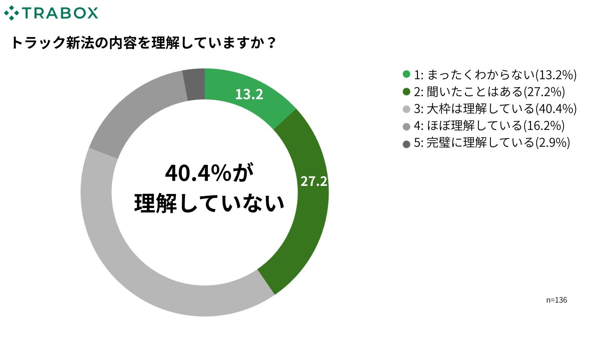 トラック新法の内容を理解していますか?という質問について、新法について認知はされているものの、詳細を理解していない企業が多い傾向にありました。
