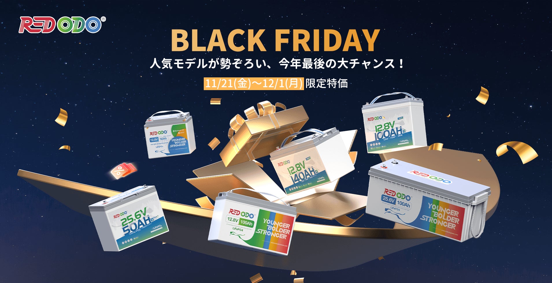【Amazonブラックフライデー2025】Redodo、高性能LiFePO₄バッテリー・充電器などエネルギー製品を年間最低価格で提供!