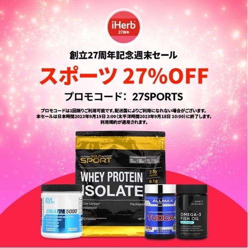 ■iHerb創業27周年セール開催中 SPORTSブランド27%OFF