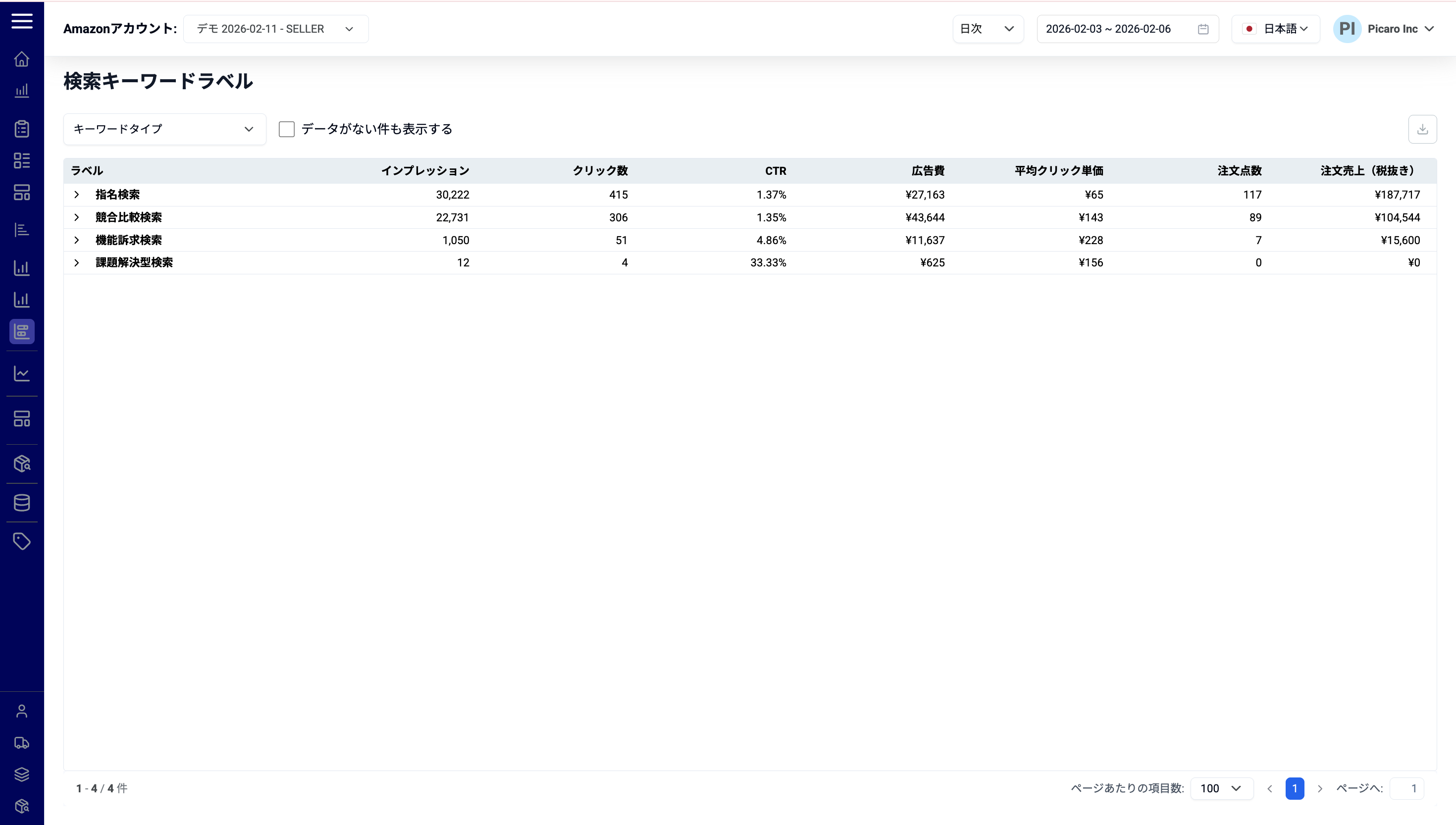 株式会社Picaro.AI(本社:神奈川県横浜市西区、代表取締役:下平 季位、以下 Picaro.AI)は、AI自動化が進むAmazon広告運用において、成果の理由が不明確になる「ブラックボックス化」の課題を解決するため、全検索キーワードの構造化ラベリング機能を実装した広告戦略基盤の提供を開始しました。