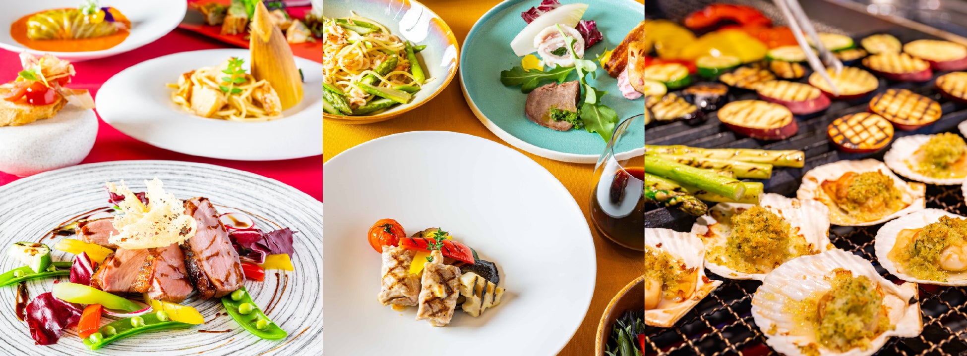 和洋折衷の朝食ビュッフェをはじめ、本格イタリアンのランチビュッフェとディナーコースまで、さまざまなシーンでご利用いただけます。オープンキッチンならではの調理風景や香りが五感を刺激し、ライブ感あふれるダイニング体験をお楽しみください。