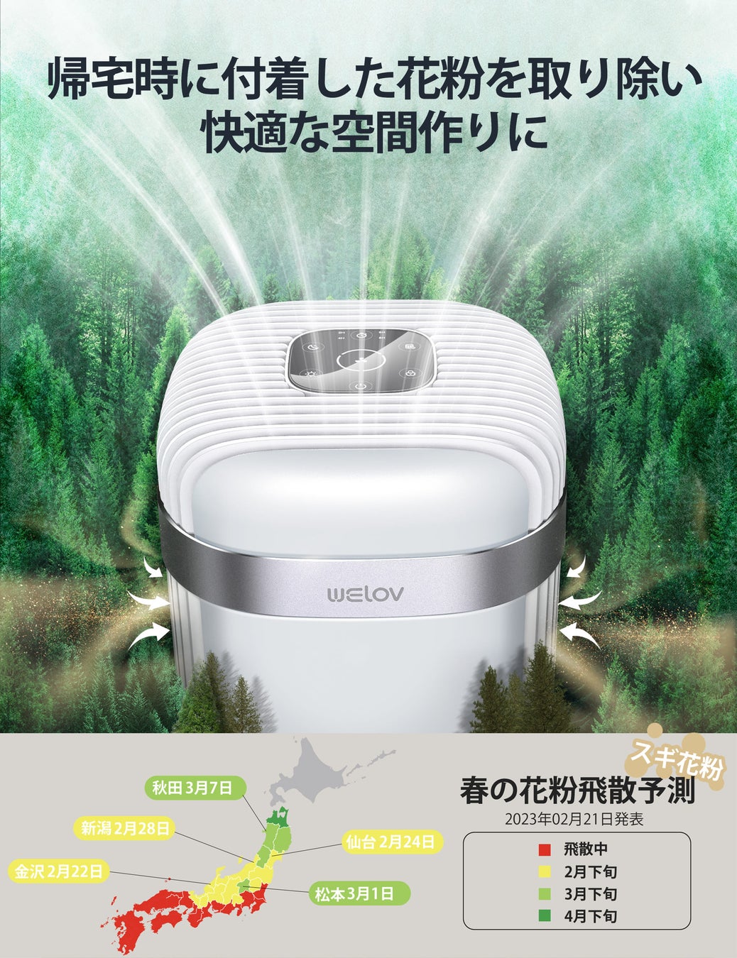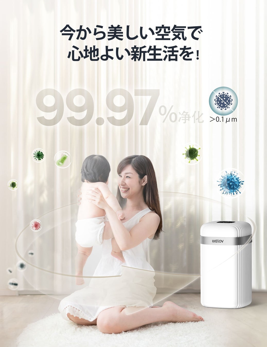 春の季節は、自然が目覚め、新しい始まりの季節ですが、花粉症やペットアレルギー、そして新居に引っ越してきた方にとっては辛い季節でもありますよね。でも、そんな悩みを解決してくれる味方がいるんです!それが、可愛くて小さな「WELOV空気清浄機P100」です♪ ぜひ、新生活のお供にいかがでしょうか?