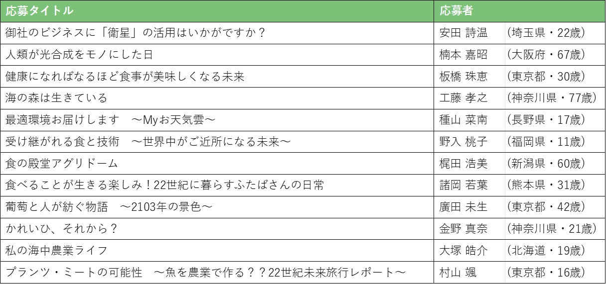 応募総数は1,076件!受賞ノミネート作品12件を選出!第二回『未来エッセイ2101』 ~22世紀の食や農業の未来を思い描くエッセイコンテスト~