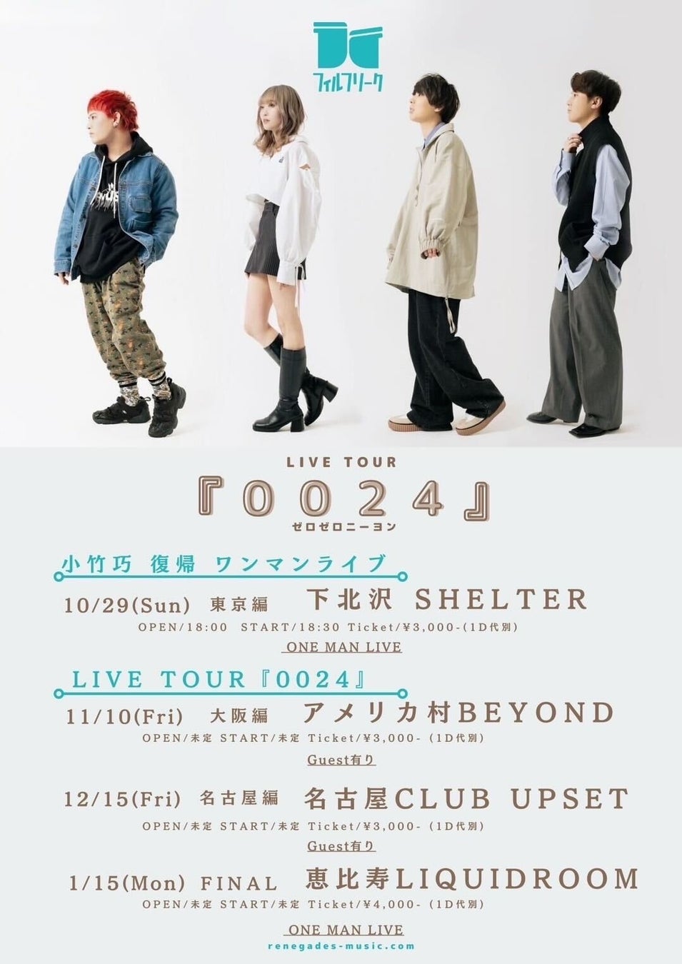 併せて、ギタリスト小竹巧の完全復帰と『0024』ツアー決定も発表します。最大加速で駆け抜けるフィルフリークにご期待下さい!