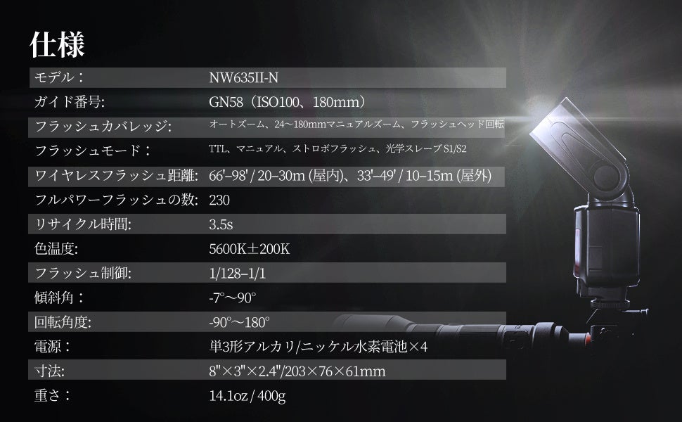 【新発売・プロの写真撮影用】「NEEWER 新版 NW635II-N スピードライト」フラッシュの可能性をさらに広げる!GN58により遠距離撮影も可能!