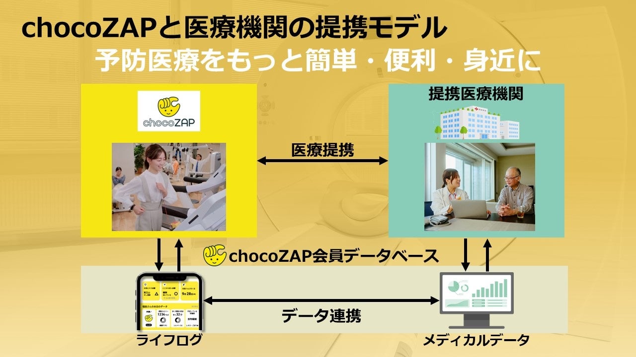「chocoZAPメディカル」によって、日本の健康寿命の延伸と予防医療の実現を目指し、社会課題の解決への貢献を目指してまいります。