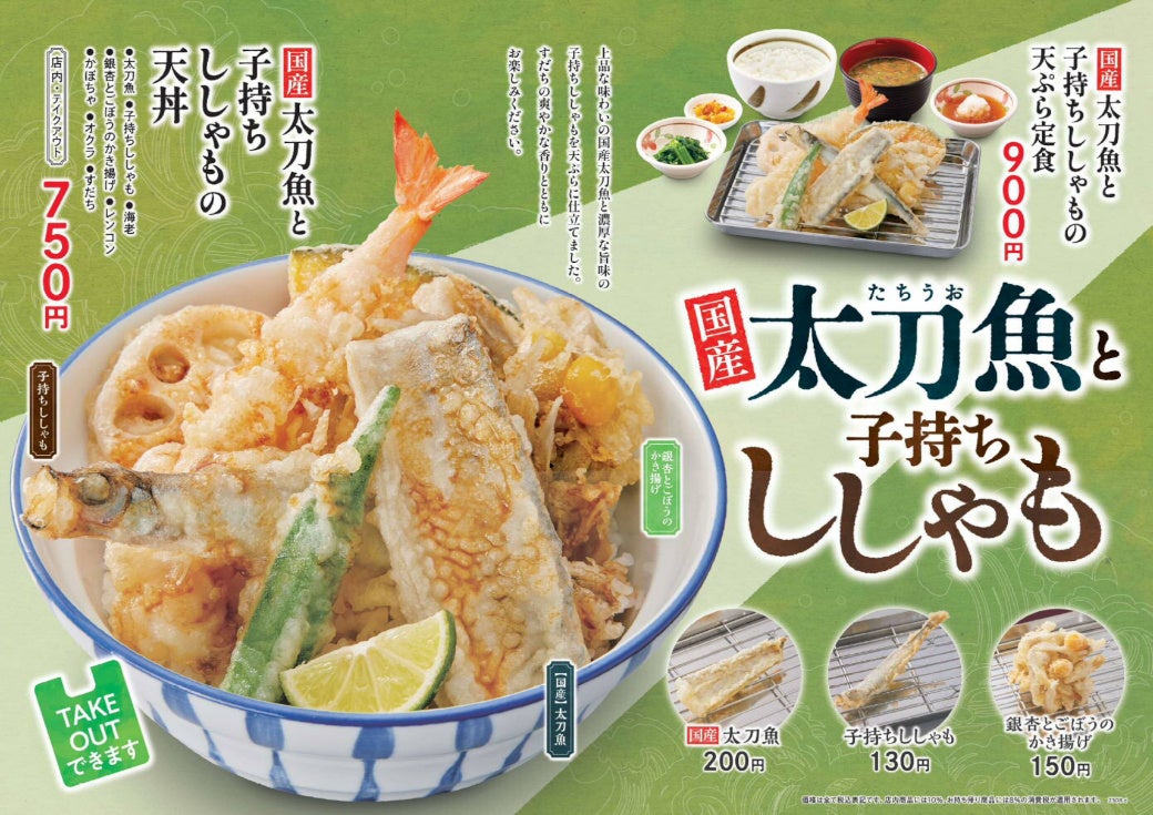 【天丼・天ぷら本舗 さん天】8/31太刀魚と子持ちししゃもフェアを販売開始!