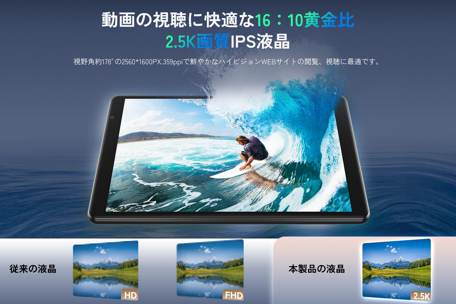Android13 / 8.4インチ 2.5K IPS 2560*1600 / RAM 8GB(4+4拡張)/ ROM 64GB / 8コア CPU / 大容量バッテリー5100mAh