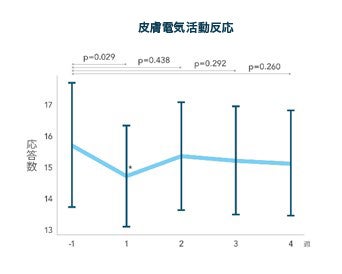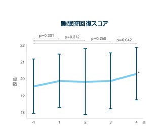 Fitbit等のウェアラブルデバイスによる睡眠評価の技術が発展、実用化されており、保健・医療相談などへの活用が期待されています。本試験では、Fitbit Charge 5を用いた睡眠関連指標の評価も行いました。その結果、GABA(1日700mg)、L-テアニン(1日200mg)の就寝前摂取により、睡眠時の回復スコアや睡眠時心拍数、ストレス指標である皮膚電気活動反応の有意な改善が認められました。(回復スコア:4週時点、睡眠時心拍数:1週時点、皮膚電気活動反応:1週時点)。