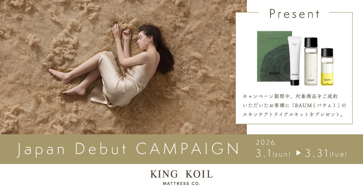ドリームベッド株式会社(本社:広島市西区、代表取締役社長:三宅弘人)は、米国発のプレミアムマットレスブランド「KING KOIL(キングコイル)」の日本本格デビューを記念し、2026年3月1日(日)より、特別なプレゼントキャンペーンを実施いたします。